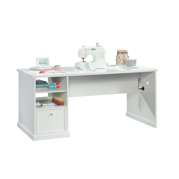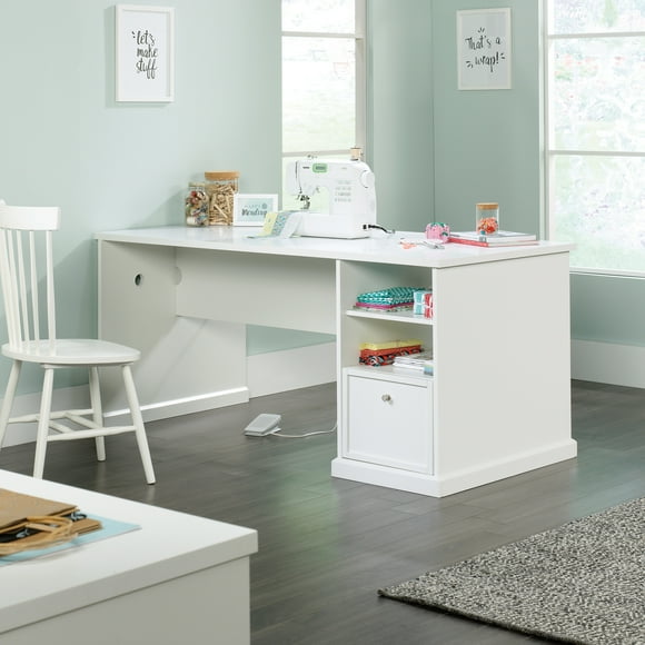 Better Homes Gardens Modern Farmhouse Wood Sewing Table Rustic White Finish Walmart Com