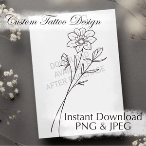 Flower Tattoo Design Hand Drawn Stencil Printable In Png And Etsy Australia